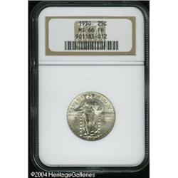 1930 25C MS66 Full Head NGC. Fantastic luster, and <B>1930 25C MS66 Full Head NGC.</B></I> Fantastic luster, and just a few touches of olive color on the reverse. Crisply struck, with no significant contact marks. <BR><BR><B>Important notice:</B> Heritage usually auctions material at the rate of 200-250 lots per hour. On some occasions eBay Live bid software or the Internet may not be able to keep up with the pace of the auction. We recommend placing a realistic absentee bid now as insurance to avoid disappointment. Occasionally the auctioneer may eliminate or reject an eBay Live bid, and the auctioneer may also reopen a lot after the close of the eBay live bidding (usually because we missed an audience bid), and may reject your bid even if it shows you as the winning bidder. By bidding via eBay Live, you agree that Heritage may award the lot to another bidder at its sole discretion under the circumstances described above or any other reasonable circumstances. Since eBay bids are not shown to us until we open the lot on the floor, we treat those bids just like floor bids. In most cases the floor responds before the eBay bid is presented to us, due to Internet lag time, so for consistency we have made it a policy that floor bids are always considered first over tie eBay live bids. Also please note that all Heritage lots purchased through eBay Live carry a 20% Buyer's Premium. Please make sure you read the Terms and Conditions before you bid. This lot is being auctioned in conjunction with a live floor auction by Heritage Galleries & Auctioneers. All final auction and invoice information will be supplied by Heritage Galleries & Auctioneers, and all other information should be considered preliminary. Lot:5972