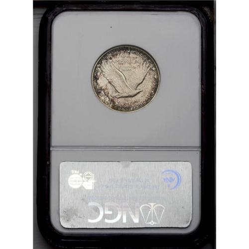 <B>1930<25C> MS66 Full Head NGC.</B></I> Sharply struck with no significant marks. The luster is bright beneath light golden toning with scattered patches of russet and steel-blue color.
