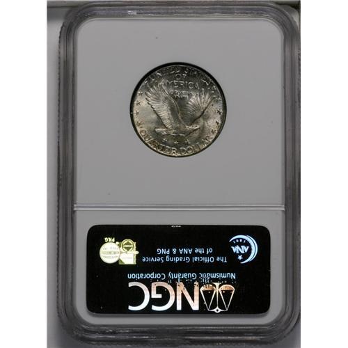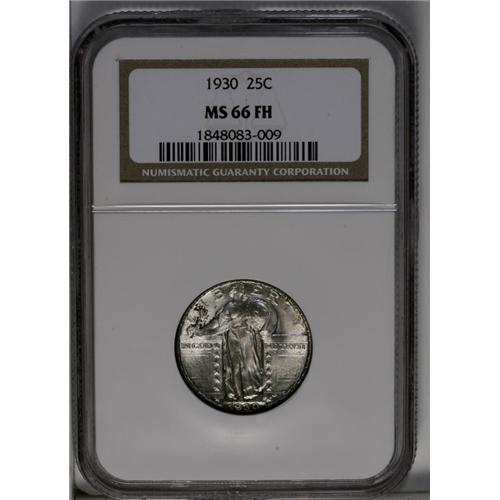 <B>1930<25C> MS66 Full Head NGC.</B></I> The satiny surfaces have intermittent dark toning in the left field and exergue. The stars below the eagle are surrounded by green-gold toning as well. Besides the full head details, most of the shield rivets are bold.<BR><I>Ex: Henry Pirtle Collection (Stack's, 4/53), lot 808.</B></I><BR><I>From The Redfjord Collection.</B></I>