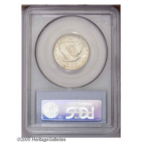 <B>1930<25C> MS66 Full Head PCGS.</B></I> The head is razor-sharp, and only the usual pair of shield rivets are not assertively struck. This lustrous final year Standing Liberty Quarter possesses pastel powder-blue and gold tints. Marks are present but not consequential.