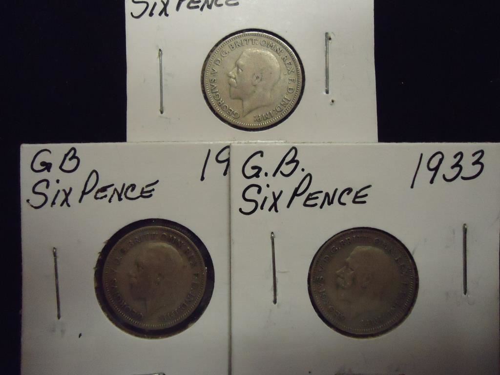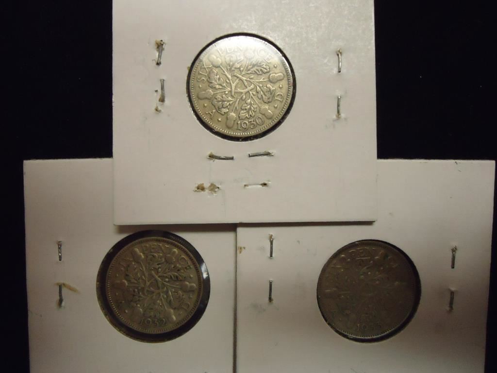 1930,32 & 1933 GREAT BRITAIN SILVER 6 PENCE