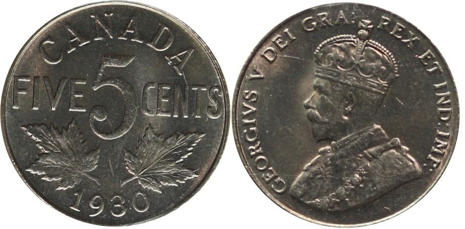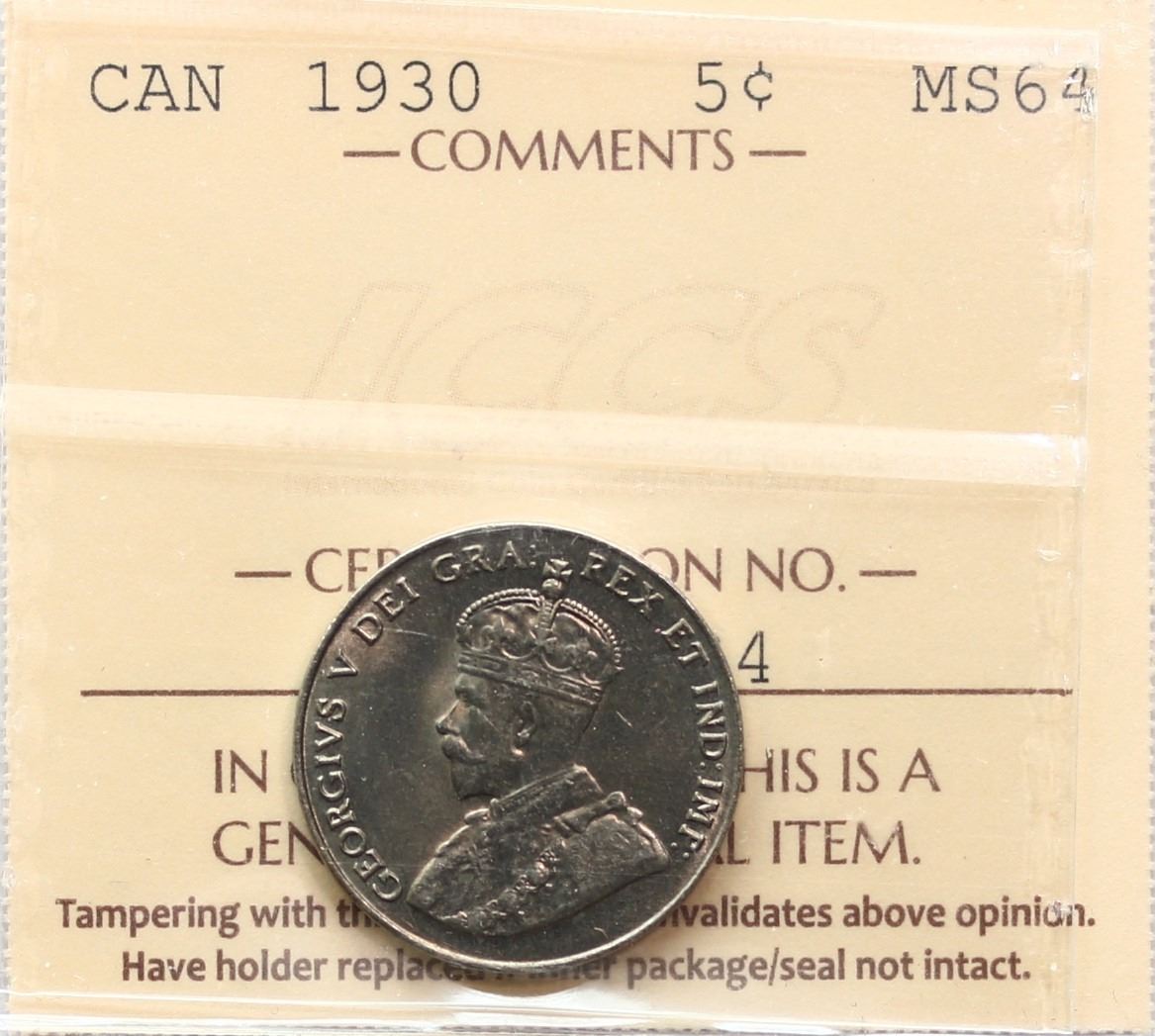 1930 5¢ ICCS Choice Mint State-64 Well struck with attractive lustre.