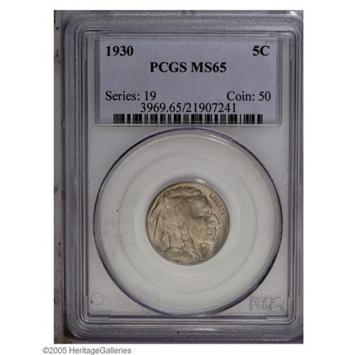 <B>1930<5C> MS65 PCGS.</B></I> WDDO-006. The obverse is die doubled, the pickup point is the Indian's eyelid. Medium tan and steel-gray colors grace this lustrous and nearly unabraded Gem. Nicely struck, although the centers are not completely defined.
