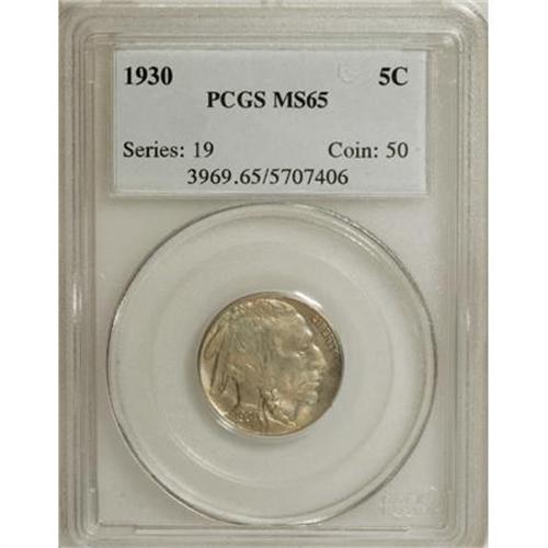 <B>1930 5C MS65 PCGS.</B></I> PCGS Population (898/270). NGC Census: (361/72). Mintage: 22,849,000. Numismedia Wsl. Price for NGC/PCGS coin in MS65: $188. (#3969)<BR><BR><B>Coin Engraver:</B> James E. Fraser<BR><BR><b>Shipping:</b> Coins & Currency (<a target="_blank" href="http://www.heritageauctions.com/common/shipping.php">view shipping information</a>)