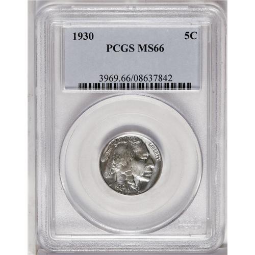 <B>1930<5C> MS66 PCGS.</B></I> A lustrous and typically struck piece with thin blue-violet patina. A tiny mark appears on the cheek, and small carbon flecks are noted on the obverse.