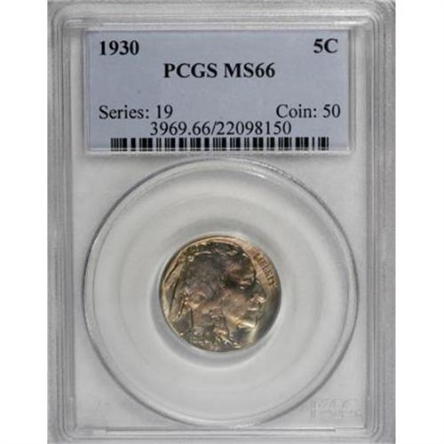 <B>1930 5C MS66 PCGS.</B></I> PCGS Population (275/20). NGC Census: (69/3). Mintage: 22,849,000. Numismedia Wsl. Price for NGC/PCGS coin in MS66: $492. (#3969)<BR><BR><B>Coin Engraver:</B> James E. Fraser<BR><BR><b>Shipping:</b> Coins & Currency (<a target="_blank" href="http://www.heritageauctions.com/common/shipping.php">view shipping information</a>)