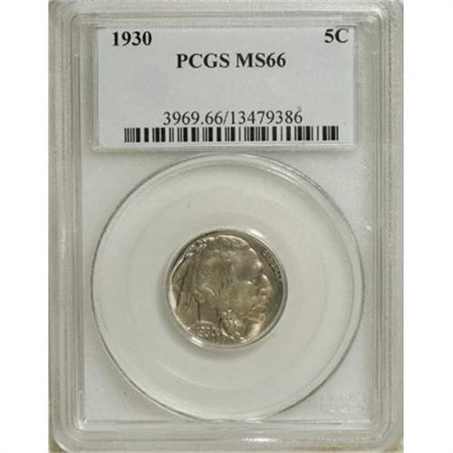 <B>1930 5C MS66 PCGS.</B></I> PCGS Population (287/21). NGC Census: (73/3). Mintage: 22,849,000. Numismedia Wsl. Price for NGC/PCGS coin in MS66: $460. (#3969)<BR><BR><B>Coin Engraver:</B> James E. Fraser<BR><BR><b>Shipping:</b> Coins & Currency (<a target="_blank" href="http://www.heritageauctions.com/common/shipping.php">view shipping information</a>)