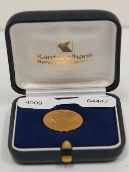 Retail Price $1,490 22Kt Yellow Gold -- 1930 B 20 Swiss Helvetia Franc Gold Coin in the case --