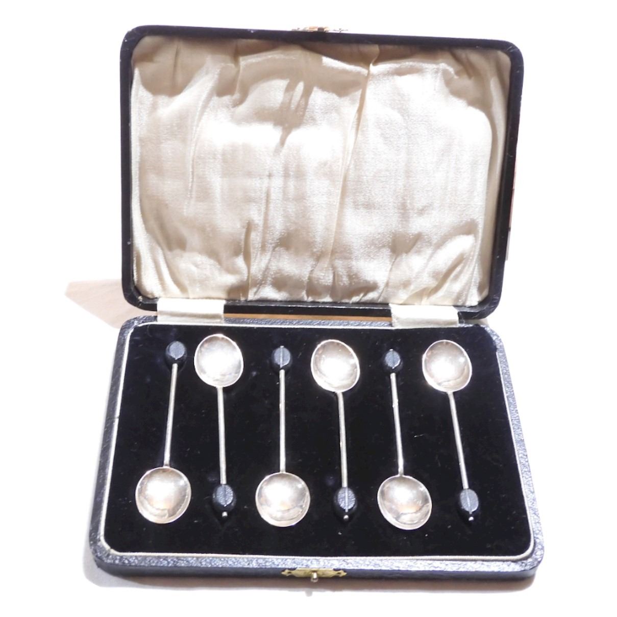 1930 Birmingham William Suckling Ltd Sterling Silver Coffee Spoon Set with Original Case. Total weight of Spoon set is 36 grams.