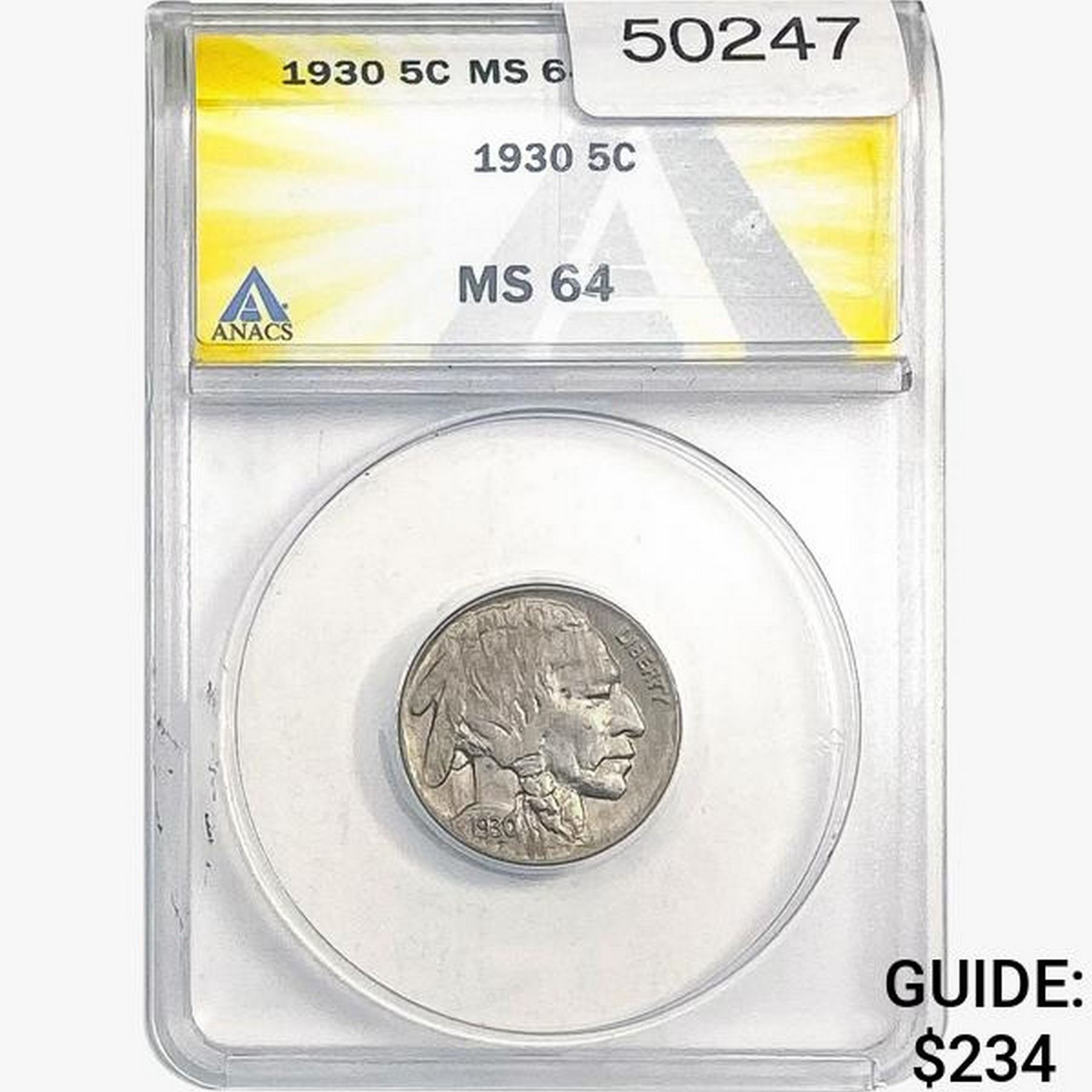 1930 Buffalo Nickel ANACS MS64