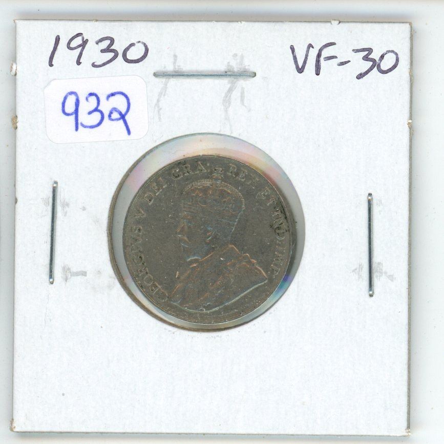1930 Canadian Nickel 5 Cents. VF-30 with complete centre diamond.