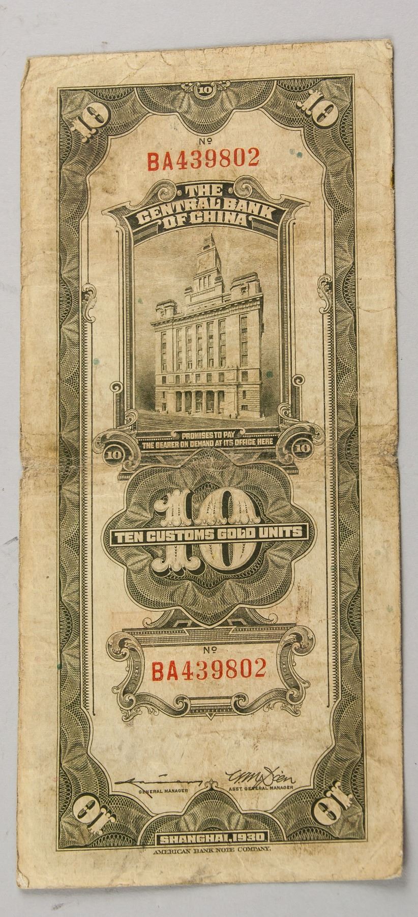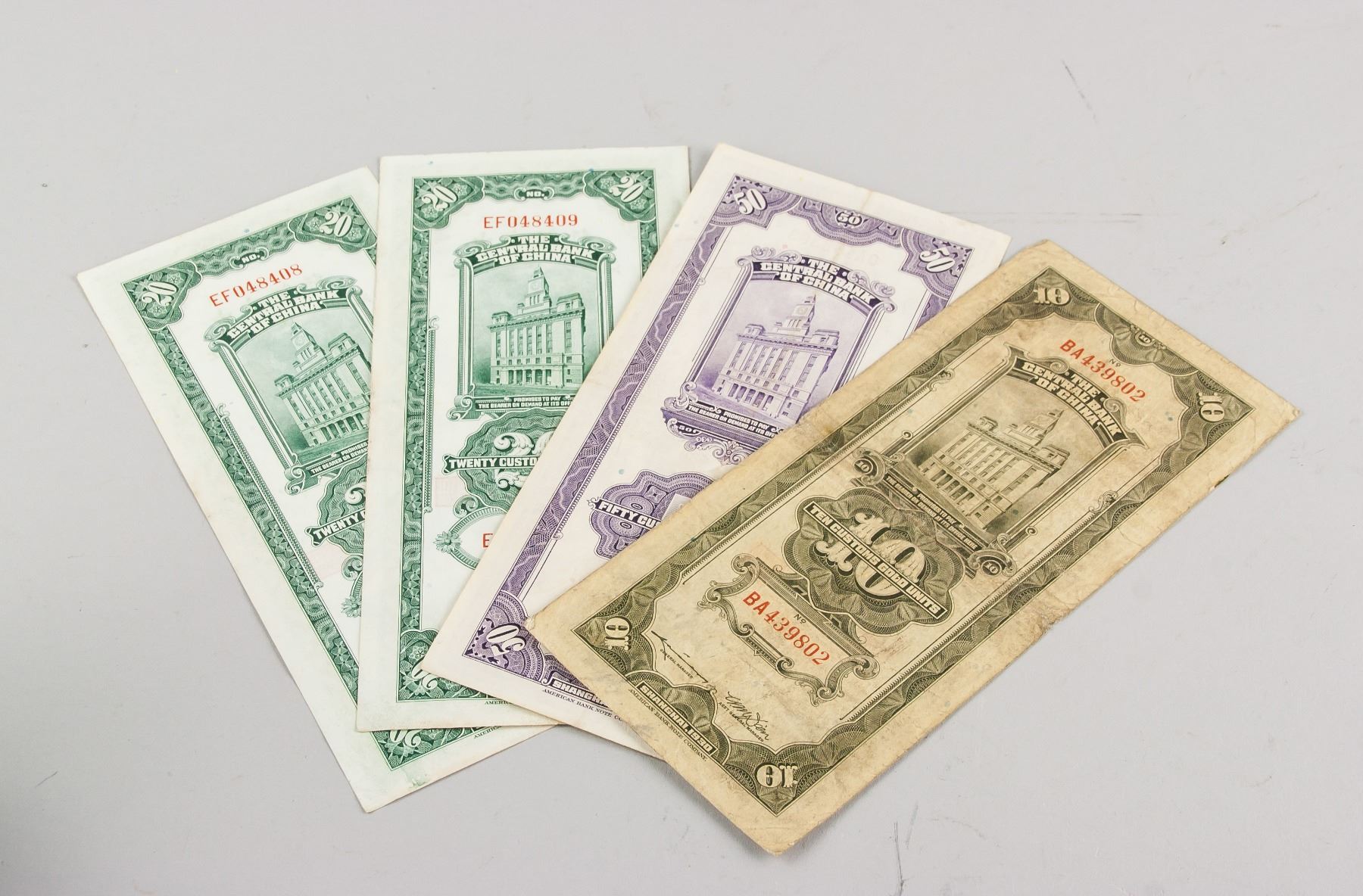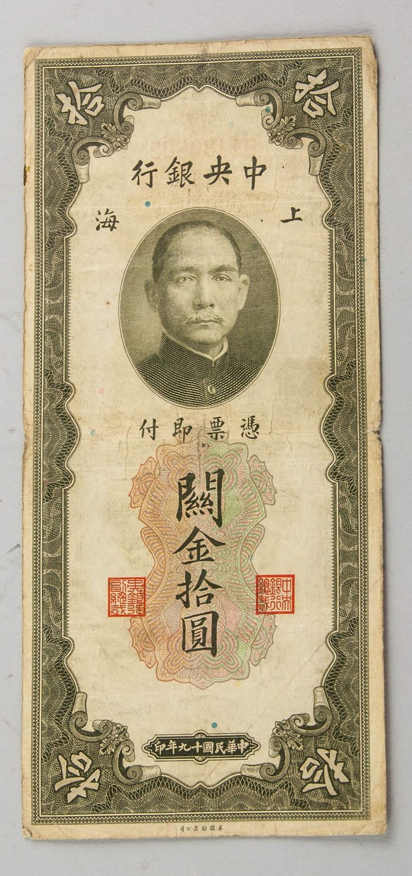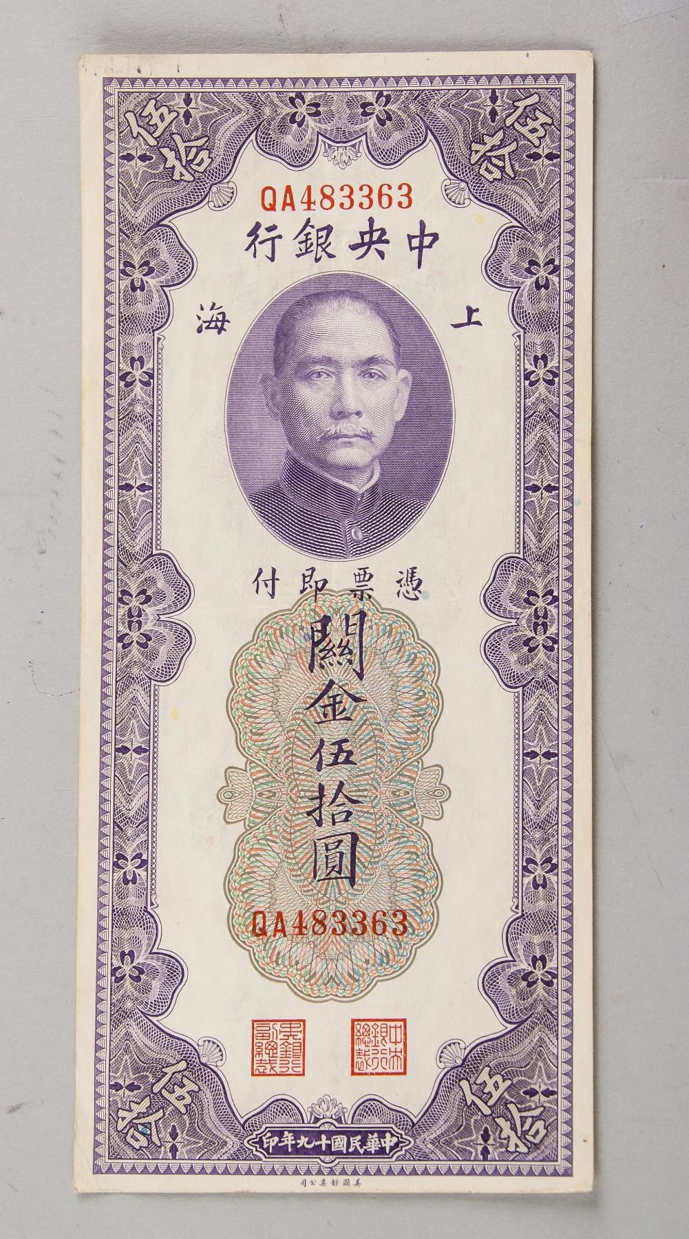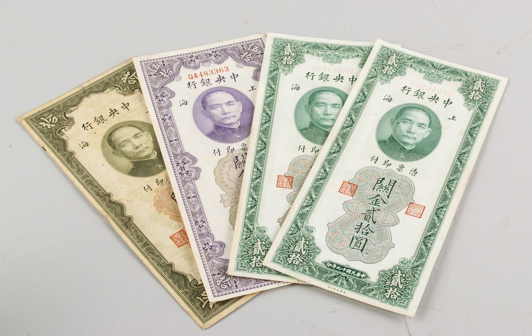 4 1930 China Republic Custom banknote, of 2 20 Dollars, 1 10 Dollars, 1 50 Dollars, Bank of China, Shanghai, 8.6 x 19.1 cm
