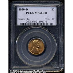 <B>1930-D<1C> MS66 Red PCGS.</B></I> Generally nicely struck, with pretty copper-orange, lustrous surfaces that reveal no significant abrasions. A few tiny flecks are noted, but none are bothersome. Population: 82 in 66, 6 finer (3/04). <BR><BR><B>Important notice:</B> Heritage usually auctions material at the rate of 200-250 lots per hour. On some occasions eBay Live bid software or the Internet may not be able to keep up with the pace of the auction. We recommend placing a realistic absentee bid now as insurance to avoid disappointment. Occasionally the auctioneer may eliminate or reject an eBay Live bid, and the auctioneer may also reopen a lot after the close of the eBay live bidding (usually because we missed an audience bid), and may reject your bid even if it shows you as the winning bidder. By bidding via eBay Live, you agree that Heritage may award the lot to another bidder at its sole discretion under the circumstances described above or any other reasonable circumstances. Since eBay bids are not shown to us until we open the lot on the floor, we treat those bids just like floor bids. In most cases the floor responds before the eBay bid is presented to us, due to Internet lag time, so for consistency we have made it a policy that floor bids are always considered first over tie eBay live bids. Also please note that all Heritage lots purchased through eBay Live carry a 20% Buyer's Premium. Please make sure you read the Terms and Conditions before you bid. </span></font></tr></table></td></tr></table>