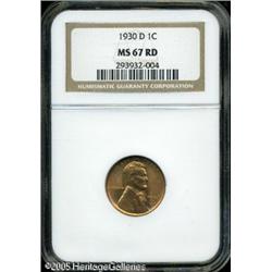 <B>1930-D 1C MS67 Red NGC.</B></I> This is a Superb Gem with brilliant orange luster and exceptional eye appeal. Furthermore, no finer Red cents of this date have been certified by either PCGS or NGC. An important opportunity for the advanced collector. Population: 7 in 67, 0 finer (1/05). Lot:5517