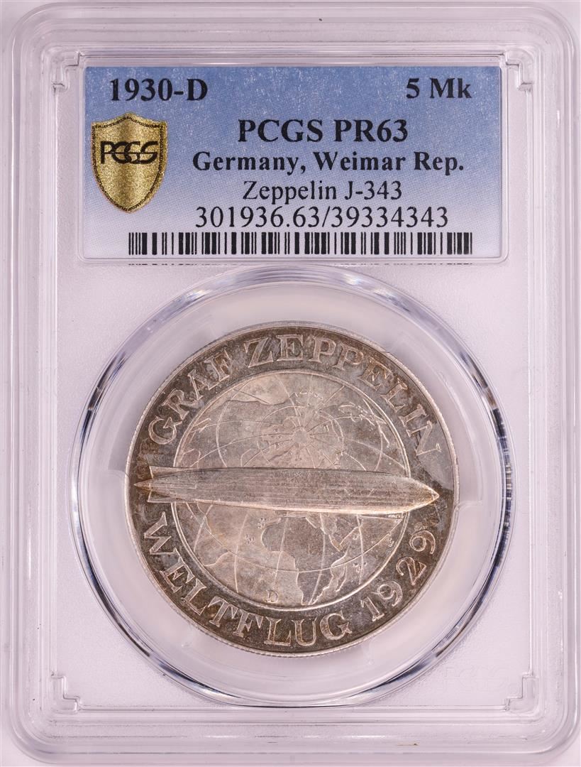 One 1930-D Proof Germany Weimar Republic Zeppelin PCGS PR63.