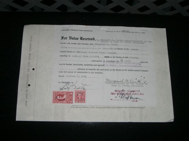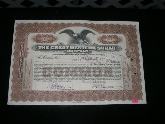 1930 EXTREMELY RARE 50 SHARES STOCK CERTIFICATE *THE GREAT WESTERN SUGAR COMPANY - NICE STOCK CERTIFICATE*!! ***Coin, Currency & All Items Listed in this auction - Grades, Conditions and Values are not Safe Deposit Coins LLC Responsibilty. Grades, Condition and Values are determined by Consigner(s) & Buyers ONLY