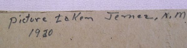 Hand Colored Photograph of Jemez Woman. This photograph has handwriting on the back that says ''picture taken Jemez, N.M. - 1930.'' It has been painted with oil and covered with shellac. There is a signature on the lower right corner. It measures 9''H x 7''W.