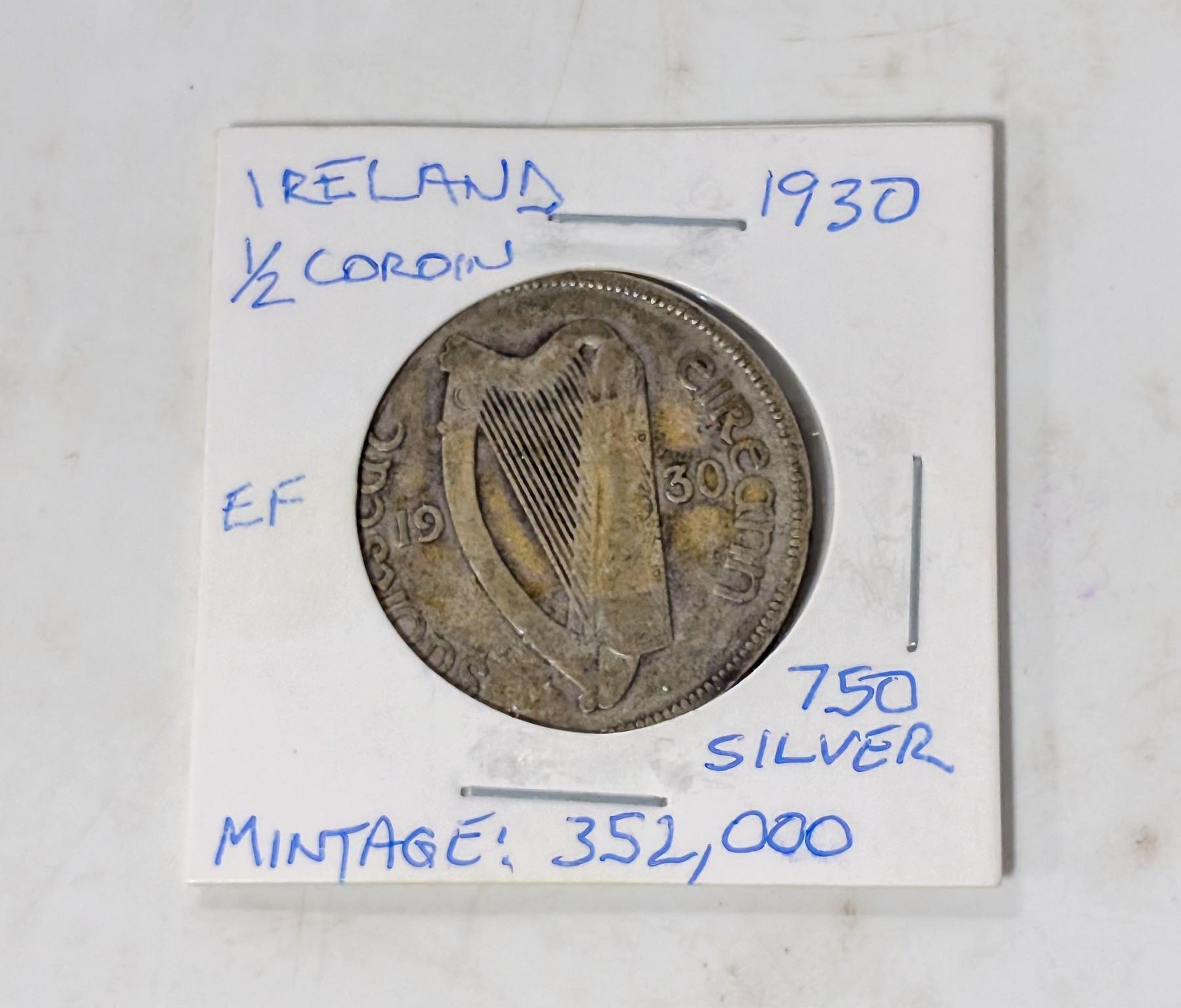 1930 IRELAND HALF COROIN SILVER COIN 750 SILVER