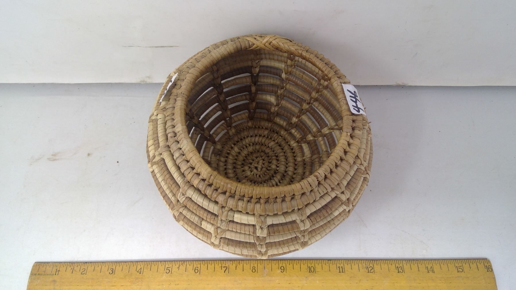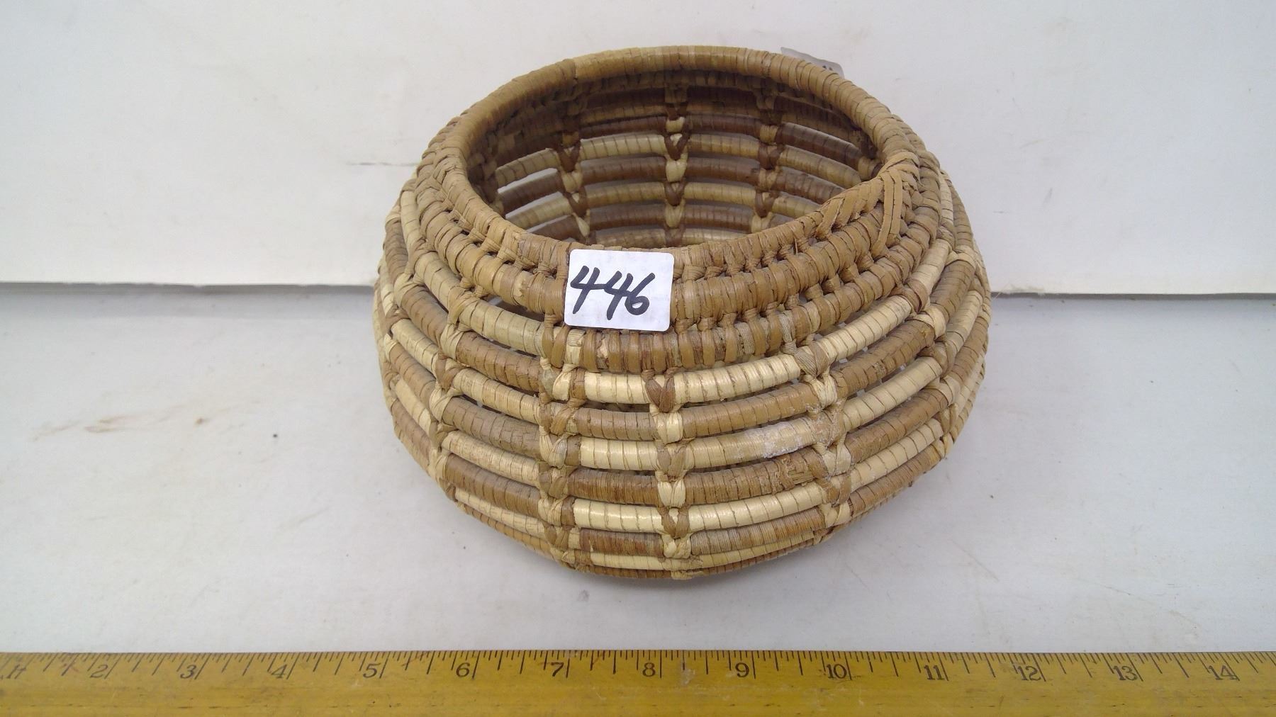 446 – 1930 Indigenous basket coil wrapped. Diameter: 8”.