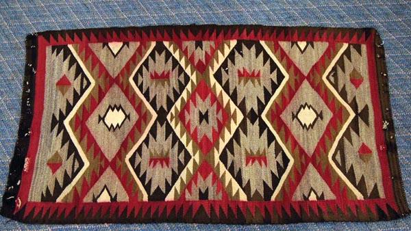 1930 Native American Navajo Textile Rug. Measures approx. 49'' x 28''. Some damage. Buyers Pay Actual Shipping and Handling Charges(see terms and conditions for more information).