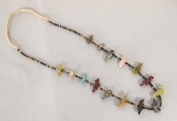 1930 Navajo Stone Fetish including turquoise, serpentine, pipestone, Single Strand Heishi Necklace, measures approx. 28'' end to end, all string tied. End to End Measurement 28''. Fetish are approx. 1''L. SHI $15