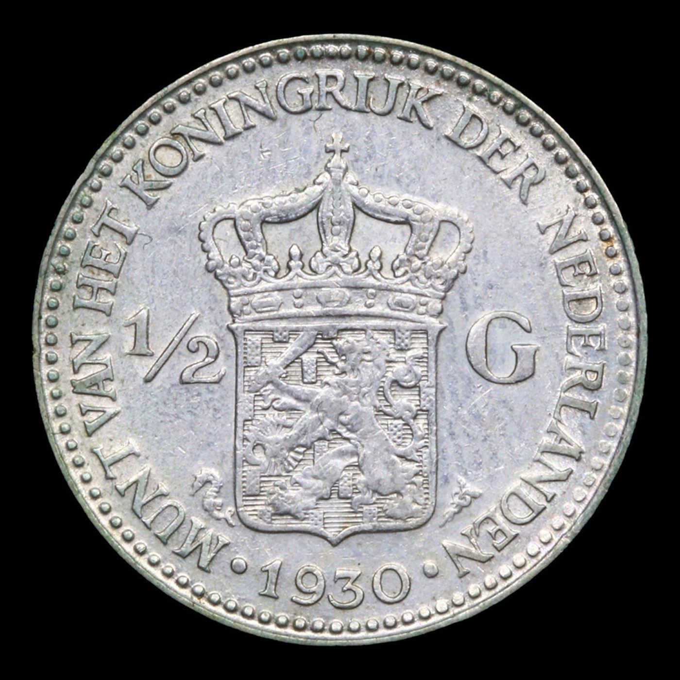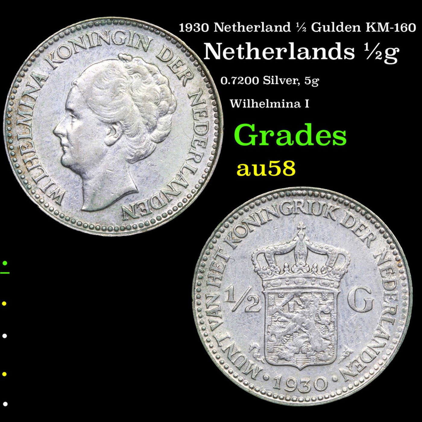 1930 Netherland 1/2 Gulden KM-160 Grades Choice AU/BU Slider.