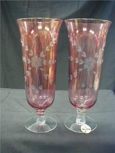 1930 PR CRANBERRY FLASH FTD. VASES CUT RND FLOWER