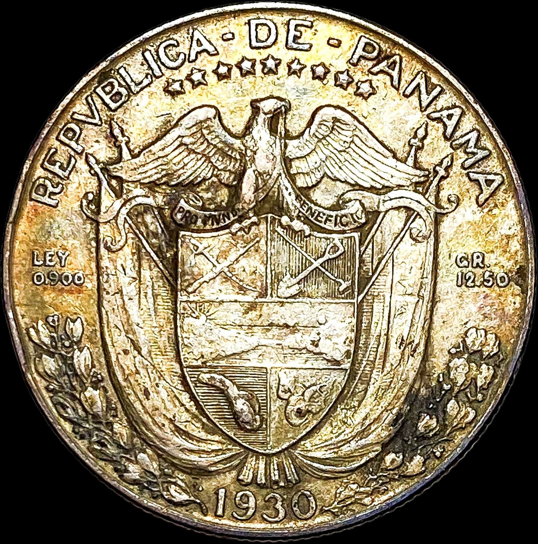 1930 Panama Silver 1/2 Balboa NEARLY UNCIRCULATED