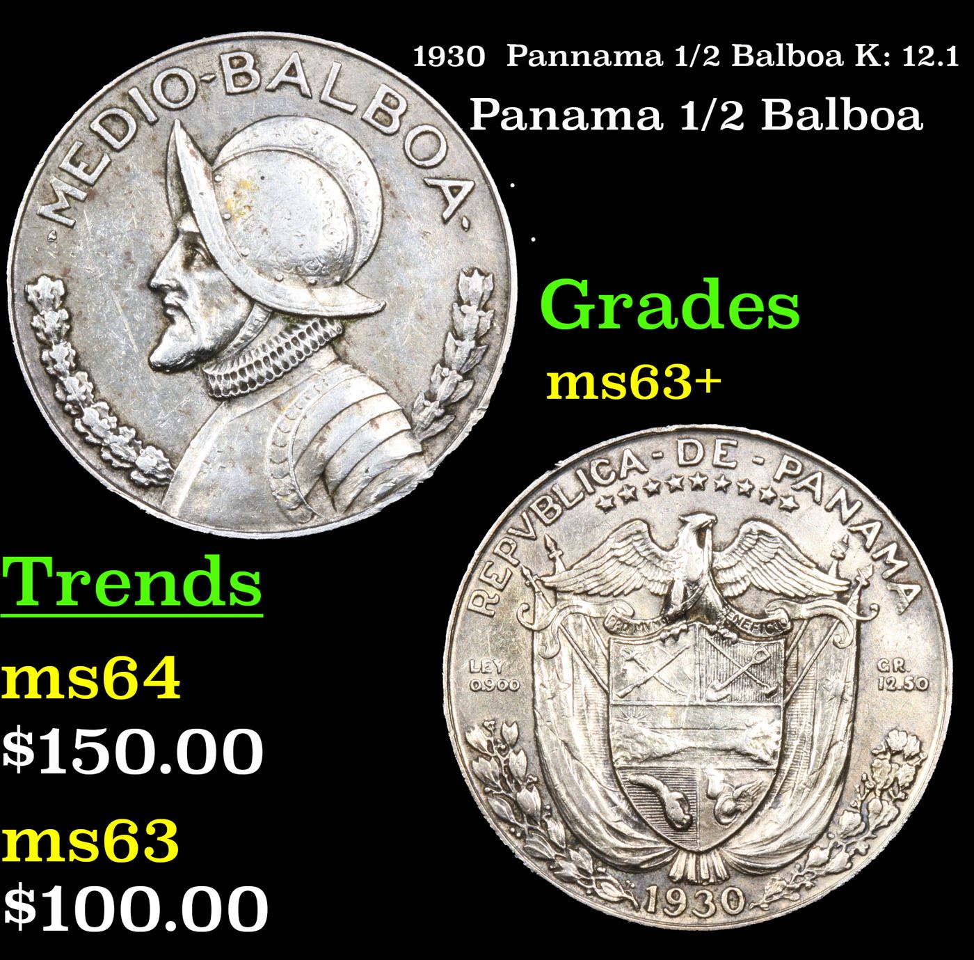 1930 Pannama 1/2 Balboa K: 12.1 Grades Select+ Unc.