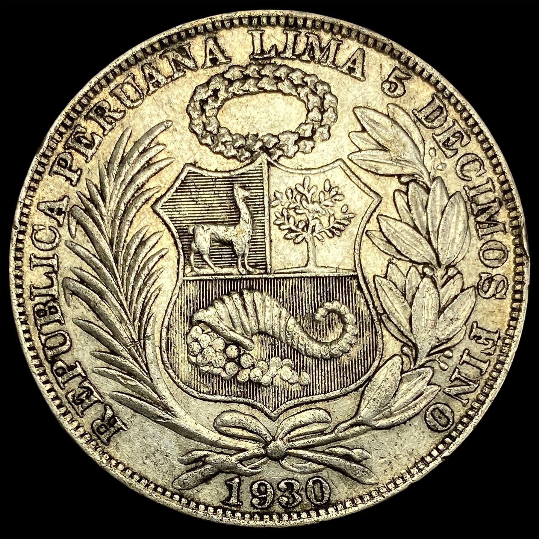 1930 Peru Silver Sol NEARLY UNCIRCULATED