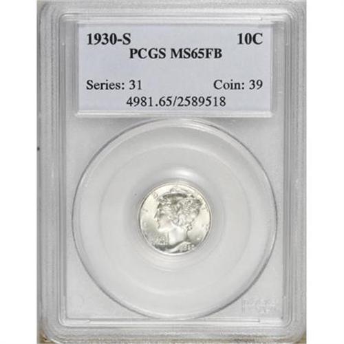 <B>1930-S 10C MS65 Full Bands PCGS.</B></I> PCGS Population (134/65). NGC Census: (25/15). Mintage: 1,843,000. Numismedia Wsl. Price for NGC/PCGS coin in MS65: $452. (#4981)<BR><BR><B>Coin Engraver:</B> Adolph A. Weinman<BR><BR><b>Shipping:</b> Coins & Currency (<a target="_blank" href="http://www.heritageauctions.com/common/shipping.php">view shipping information</a>)