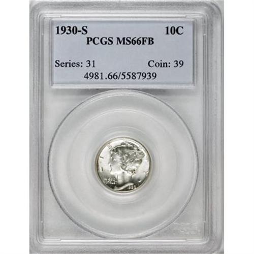 <B>1930-S 10C MS66 Full Bands PCGS.</B></I> A sharply struck and shining silver-white survivor that offers incredible visual appeal. Subtle golden accents visit the fasces on the reverse. PCGS has graded only nine finer Full Bands coins (2/08).<BR><BR><B>Coin Engraver:</B> Adolph A. Weinman<BR><BR><b>Shipping:</b> Coins & Currency (<a target="_blank" href="http://www.heritageauctions.com/common/shipping.php">view shipping information</a>)