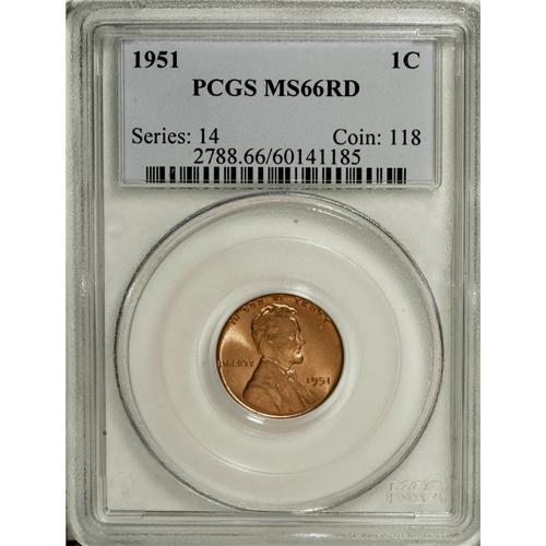 1930-S 1C MS65RD PCGS; 1951 MS66Rd PCGS and a 1953-D M