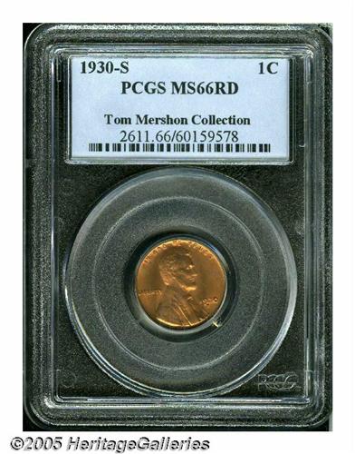 <B>1930-S<1C> MS66 Red PCGS.</B></I> Pretty orange-red color overlies fully lustrous surfaces on this nicely struck premium Gem Lincoln Cent. A few small, unobtrusive toning spots on the obverse do not distract.<BR><I>From The Tom Mershon #2 All-Time PCGS Registry Set of Lincoln Wheat Cents.</B></I>
