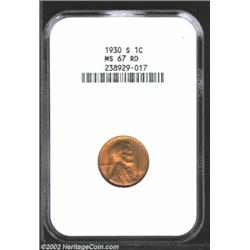 1930-S 1C MS67 Red NGC. A lustrous Superb Gem with carefully preserved surfaces and a bold strike. D