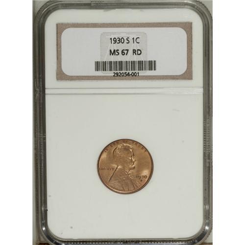 <B>1930-S<1C> MS67 Red NGC.</B></I> A solidly struck cent with somewhat streaky surfaces. Orange and red cross the lustrous fields in the beginning of a woodgrain pattern. Census: 25 in 67 Red, 0 finer (8/06).<BR><I>From The Tigard Oregon Small Cent Collection.</B></I>