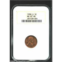 1930-S 1C MS67 Red NGC. A well struck and lustrous Superb Gem with undisturbed surfaces and consiste