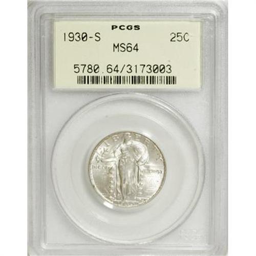 <B>1930-S 25C MS64 PCGS.</B></I> . PCGS Population (227/313). NGC Census: (112/166). Mintage: 1,556,000. Numismedia Wsl. Price for NGC/PCGS coin in MS64: $280. (#5780)<BR><BR><B>Coin Engraver:</B> Hermon A. MacNeil<BR><BR><b>Shipping:</b> Coins & Currency (<a target="_blank" href="http://www.heritageauctions.com/common/shipping.php">view shipping information</a>)