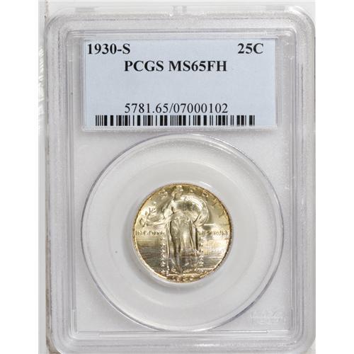 <B>1930-S 25C MS65 Full Head PCGS.</B></I> A solidly struck and highly lustrous Gem, largely untoned on the reverse and most of the obverse. A stretch of olive-gold toning extends horizontally across Liberty's upper legs.<BR><BR><b>Shipping:</b> Coin/Currency (<a target="_blank" href="http://www.heritageauctions.com/common/shipping.php">view shipping information</a>)