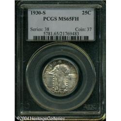 1930-S 25C MS65 Full Head PCGS. Well struck with b <B>1930-S 25C MS65 Full Head PCGS.</B></I> Well struck with beautiful champagne-gray toning and satiny, pristine surfaces on both the obverse and the reverse. An absolutely remarkable Gem, which seems conservatively graded at the current level. <BR><BR><B>Important notice:</B> Heritage usually auctions material at the rate of 200-250 lots per hour. On some occasions eBay Live bid software or the Internet may not be able to keep up with the pace of the auction. We recommend placing a realistic absentee bid now as insurance to avoid disappointment. Occasionally the auctioneer may eliminate or reject an eBay Live bid, and the auctioneer may also reopen a lot after the close of the eBay live bidding (usually because we missed an audience bid), and may reject your bid even if it shows you as the winning bidder. By bidding via eBay Live, you agree that Heritage may award the lot to another bidder at its sole discretion under the circumstances described above or any other reasonable circumstances. Since eBay bids are not shown to us until we open the lot on the floor, we treat those bids just like floor bids. In most cases the floor responds before the eBay bid is presented to us, due to Internet lag time, so for consistency we have made it a policy that floor bids are always considered first over tie eBay live bids. Also please note that all Heritage lots purchased through eBay Live carry a 20% Buyer's Premium. Please make sure you read the Terms and Conditions before you bid. This lot is being auctioned in conjunction with a live floor auction by Heritage Galleries & Auctioneers. All final auction and invoice information will be supplied by Heritage Galleries & Auctioneers, and all other information should be considered preliminary. Lot:5973