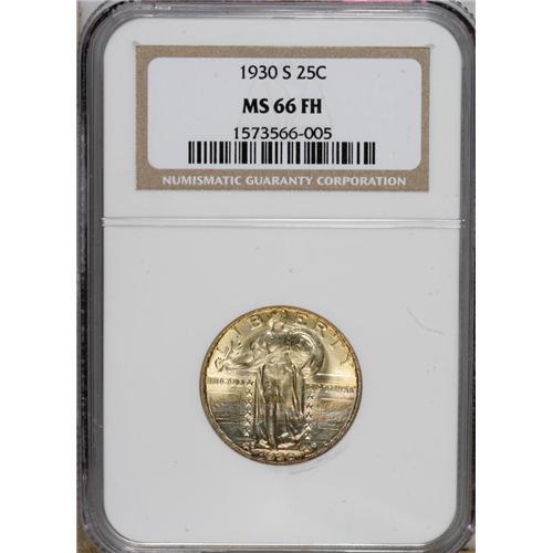 <B>1930-S 25C MS66 Full Head NGC.</B></I> Golden patina graces most of the obverse, while the reverse is largely brilliant. Powerful, swirling luster enhances the eye appeal, and strong overall detail adds even more desirability. A wonderful example of this final-year issue.<BR><BR><b>Shipping:</b> Coins & Currency (<a target="_blank" href="http://www.heritageauctions.com/common/shipping.php">view shipping information</a>)