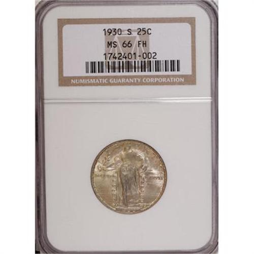 <B>1930-S 25C MS66 Full Head NGC.</B></I> The champagne and lilac coloration that covers both sides of this Premium Gem is intoxicating to behold. The surfaces are well preserved, with boldly struck deices and vibrant, shimmering luster. A conditionally scarce offering at this lofty grade level. <BR><BR><B>Coin Engraver:</B> Hermon A. MacNeil<BR><BR><b>Shipping:</b> Coins & Currency (<a target="_blank" href="http://www.heritageauctions.com/common/shipping.php">view shipping information</a>)