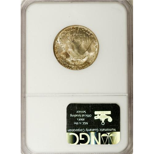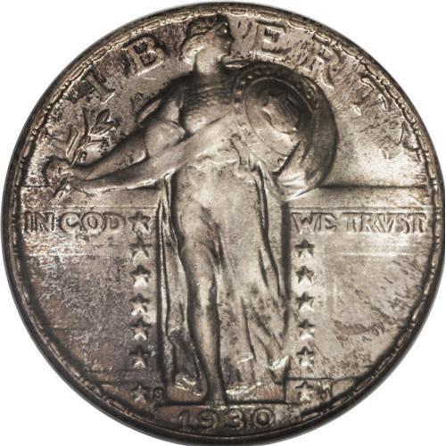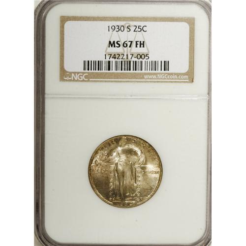 <B>1930-S 25C MS67 Full Head NGC.</B></I> The variegated iridescence that adorns both sides is illuminated by vibrant underlying luster. Razor-sharp and essentially complete, the strike accentuates nearly every detail. Not even the most trivial contact mark breaks the continuity of the swirling mint luster. A beautiful Superb Gem that would enhance almost any high grade collection of Standing Liberty quarters. Census: 17 in 67, 2 finer (12/06).<BR><BR><b>Shipping:</b> Coin/Currency (<a target="_blank" href="http://www.heritageauctions.com/common/shipping.php">view shipping information</a>)