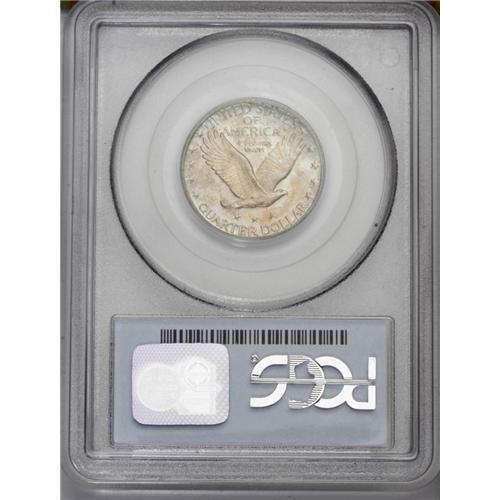 <B>1930-S<25C> MS67 Full Head PCGS.</B></I> The deep, multicolored iridescence assumes a lilac-blue and golden cast at select angles of observation. Razor sharp and nearly complete, the strike accentuates nearly every detail. Not even the most trivial contact mark breaks the continuity of the swirling mint luster. A gorgeous coin and a fitting conclusion to the finest collection of Standing Liberty quarters ever assembled. Population: 16 in 67, 0 finer (4/06).