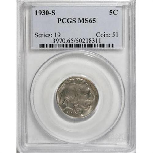 <B>1930-S 5C MS65 PCGS.</B></I> PCGS Population (423/118). NGC Census: (157/24). Mintage: 5,435,000. Numismedia Wsl. Price for NGC/PCGS coin in MS65: $400. (#3970)<BR><BR><B>Coin Engraver:</B> James E. Fraser<BR><BR><b>Shipping:</b> Coins & Currency (<a target="_blank" href="http://www.heritageauctions.com/common/shipping.php">view shipping information</a>)