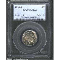 <TABLE cellSpacing=0 cellPadding=0 width="100%" bgColor=#000000 border=0><TBODY><TR><TD width="100%"><TABLE cellSpacing=1 cellPadding=3 width="100%" border=0><TBODY><TR><TD width="100%" bgColor=#79735c><FONT face=arial color=#ffffff size=3><B>Description</B> </FONT></TD></TR><TR><TD width="100%" bgColor=#ffffff><FONT face=arial size=2><B>1930-S 5C MS66 PCGS.</B></I> Lovely peach accents are seen within the recesses of this shimmering Gem. The highpoints of the design are a trifle mushy, as is the normal tendency on '30-S Nickels. </FONT></TD></TR></TBODY></TABLE></TD></TR></TBODY></TABLE><BR><A name=PricesRealized></A><TABLE cellSpacing=0 cellPadding=0 width="100%" bgColor=#000000 border=0><TBODY><TR><TD width="100%"><TABLE cellSpacing=1 cellPadding=3 width="100%" border=0><TBODY><TR><TD width="100%" bgColor=#79735c><A name=PR><FONT face=arial color=#ffffff size=3><B>Previous Prices from Heritage Auctions</B> </FONT></A></TD></TR><TR><TD bgColor=#f6f6ed><TABLE cellSpacing=0 cellPadding=0 width="100%" border=1><TBODY><TR><TD align=middle width="33%"><B>Date</B></TD><TD align=middle width="33%"><B>Service</B></TD><TD align=middle width="33%"><B>Price</B></TD></TR><TR bgColor=whitesmoke><TD width="33%"><B>06/08/2002</B></TD><TD width="33%">PCGS</TD><TD width="33%">$1,610.00</TD></TR><TR bgColor=whitesmoke><TD width="33%"><B>06/08/2002</B></TD><TD width="33%">PCGS</TD><TD width="33%">$1,610.00</TD></TR><TR bgColor=whitesmoke><TD width="33%"><B>05/31/2001</B></TD><TD width="33%">PCGS</TD><TD width="33%">$1,380.00</TD></TR><TR bgColor=whitesmoke><TD width="33%"><B>01/05/2001</B></TD><TD width="33%">PCGS</TD><TD width="33%">$1,380.00</TD></TR><TR bgColor=whitesmoke><TD width="33%"><B>01/05/2001</B></TD><TD width="33%">PCGS</TD><TD width="33%">$1,380.00</TD></TR><TR bgColor=whitesmoke><TD width="33%"><B>08/19/1995</B></TD><TD width="33%">PCGS</TD><TD width="33%">$1,760.00</TD></TR><TR bgColor=whitesmoke><TD width="33%"><B>11/17/1995</B></TD><TD width="33%">PCGS</TD><TD width="33%">$1,100.00</TD></TR><TR bgColor=whitesmoke><TD width="33%"><B>11/17/1995</B></TD><TD width="33%">PCGS</TD><TD width="33%">$1,100.00</TD></TR><TR bgColor=whitesmoke><TD width="33%"><B>08/13/1999</B></TD><TD width="33%">PCGS</TD><TD width="33%">$1,380.00</TD></TR><TR bgColor=whitesmoke><TD width="33%"><B>03/21/1998</B></TD><TD width="33%">PCGS</TD><TD width="33%">$1,207.50</TD></TR><TR bgColor=whitesmoke><TD width="33%"><B>03/21/1998</B></TD><TD width="33%">PCGS</TD><TD width="33%">$1,207.50</TD></TR><TR bgColor=whitesmoke><TD width="33%"><B>10/01/1998</B></TD><TD width="33%">PCGS</TD><TD width="33%">$2,201.00</TD></TR><TR bgColor=whitesmoke><TD width="33%"><B>11/15/2001</B></TD><TD width="33%">NGC</TD><TD width="33%">$1,035.00</TD></TR><TR bgColor=whitesmoke><TD width="33%"><B>11/15/2001</B></TD><TD width="33%">NGC</TD><TD width="33%">$1,035.00</TD></TR><TR bgColor=whitesmoke><TD width="33%"><B>02/23/2001</B></TD><TD width="33%">NGC</TD><TD width="33%">$891.25</TD></TR><TR bgColor=whitesmoke><TD width="33%"><B>01/05/2001</B></TD><TD width="33%">NGC</TD><TD width="33%">$1,006.25</TD></TR><TR bgColor=whitesmoke><TD width="33%"><B>01/05/2001</B></TD><TD width="33%">NGC</TD><TD width="33%">$1,006.25</TD></TR><TR bgColor=whitesmoke><TD width="33%"><B>08/17/1996</B></TD><TD width="33%">NGC</TD><TD width="33%">$1,155.00</TD></TR><TR bgColor=whitesmoke><TD width="33%"><B>03/01/2003</B></TD><TD width="33%">PCGS</TD><TD width="33%">$2,070.00</TD></TR><TR bgColor=whitesmoke><TD width="33%"><B>03/01/2003</B></TD><TD width="33%">PCGS</TD><TD width="33%">$2,070.00</TD></TR><TR bgColor=whitesmoke><TD width="33%"><B>07/29/2003</B></TD><TD width="33%">PCGS</TD><TD width="33%">$1,725.00</TD></TR><TR bgColor=whitesmoke><TD width="33%"><B>05/03/2003</B></TD><TD width="33%">PCGS</TD><TD width="33%">$1,955.00</TD></TR><TR bgColor=whitesmoke><TD width="33%"><B>05/03/2003</B></TD><TD width="33%">PCGS</TD><TD width="33%">$1,955.00</TD></TR></TBODY></TABLE></TD></TR><TR><TD bgColor=#ffffff><FONT face=arial size=1 ?>PLEASE NOTE: All prices realized reflect the final hammer price PLUS the buyer's premium in auctions that charge a buyer's premium. Each item has a notation at the top of the listing indicating whether that lot included a buyer's premium. Example: A item that sells with a final hammer price of $100 and a 20% buyer's premium will display with a price realized of $120. All information listed is intended to be as accurate as possible, but errors are possible. Please use this guide carefully and inform us of any inaccuracies. </FONT></TD></TR></TBODY></TABLE></TD></TR></TBODY></TABLE><BR><TABLE cellSpacing=0 cellPadding=0 width="100%" bgColor=#000000 border=0><TBODY><TR><TD width="100%"><TABLE cellSpacing=1 cellPadding=3 width="100%" border=0><TBODY><TR><TD width="100%" bgColor=#79735c colSpan=6><FONT face=arial color=#ffffff size=3><B>Price Guide*</B> </FONT></TD></TR><TR bgColor=#f6f6ed><TD align=middle><B>Grade</B> </TD><TD align=middle><B>Coin World<BR>(Trends)</B> </TD><TD align=middle><B>Numismedia<BR>Retail</B> </TD><TD align=middle><B>Numismedia<BR>Wholesale</B> </TD><TD align=middle><B>Coin<BR>Universe</B> </TD><TD align=middle><B>Heritage<BR>Value Index</B> </TD></TR><TR bgColor=#ffffff><TD align=middle>65</TD><TD align=right>$800.00</TD><TD align=right>$450.00</TD><TD align=right>$360.00</TD><TD align=right>$550.00</TD><TD align=right>$398.38</TD></TR><TR style="FONT-WEIGHT: bold" bgColor=#cccfdd><TD align=middle>66</TD><TD align=right>$2,500.00</TD><TD align=right>---</TD><TD align=right>$1,475.00</TD><TD align=right>$2,200.00</TD><TD align=right>$1,580.00</TD></TR><TR bgColor=#ffffff><TD align=middle>67</TD><TD align=right>---</TD><TD align=right>---</TD><TD align=right>---</TD><TD align=right>$10,500.00</TD><TD align=right>$7,350.00</TD></TR><TR bgColor=#ffffff><TD colSpan=6><FONT size=1>*All information listed is intended to be as accurate as possible, but errors are possible. No item may be returned or refused based on this