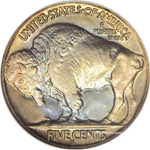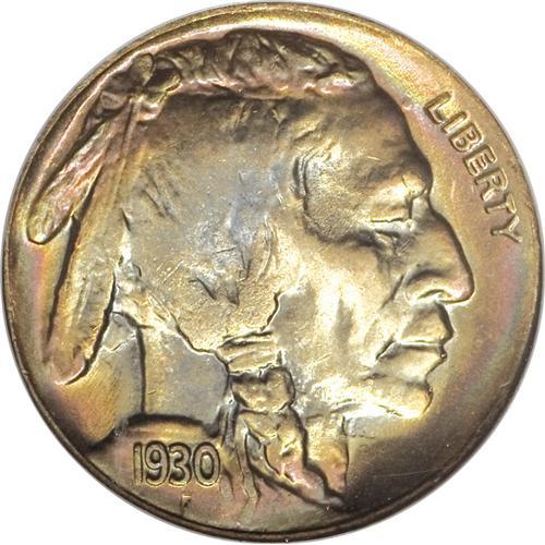 <B>1930-S 5C MS67 <img border='0' src='http://www.heritagecoins.com/images/star.gif' width=10 height=10> NGC.</B></I> The mintage of the 1930-S Buffalo nickel was a moderate 5.4 million pieces, in line with several other S-mint emissions of the series. Regardless of the sufficient mintage, this piece is likely the most beautiful 1930-S nickel on the planet, as the only piece to receive both an MS67 grade and Star designation from NGC. This specimen is intensely toned with vibrant crimson, gold, blue, and red in perfectly organized concentric rings on the obverse and reverse, with radiant luster beneath. The strike is bold for the date and mint, and the surfaces are quite clean. One must wonder if a more beautiful and desirable Buffalo nickel of this date <I>could</B></I> exist. Population: 1 in 67 S, 0 finer (4/07).<BR><BR><b>Shipping:</b> Coins & Currency (<a target="_blank" href="http://www.heritageauctions.com/common/shipping.php">view shipping information</a>)