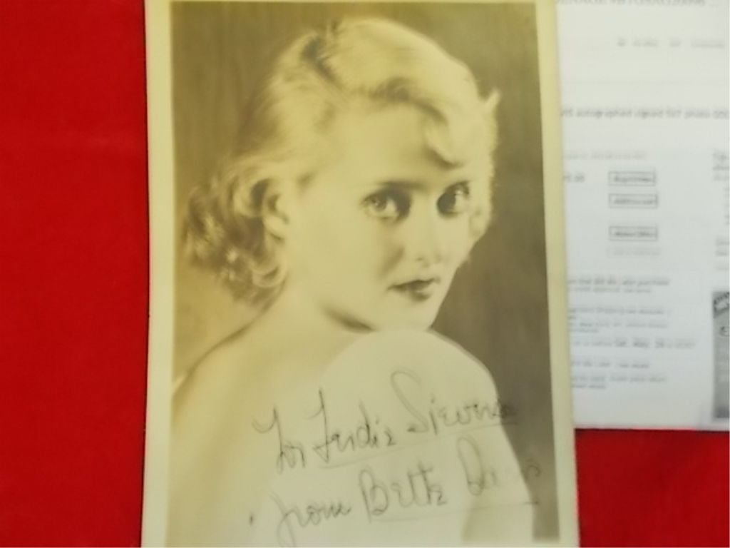 1930'S Bette Davis Signed Autograph 5 x 7 Black & White consignor guarantee's it to be authentic from wife's mothers collection