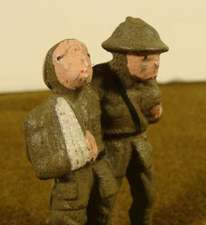 HERE IS A 1930'S "DOUGHBOY WITH WOUNDED COMRADE", DIECAST BY GREY IRON NUMBERED D27. IT IS 3" AND IS IN GOOD CONDITION. * * *