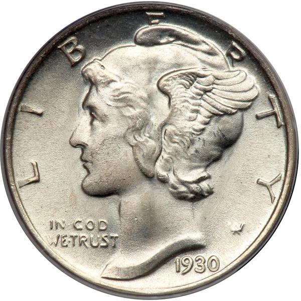 1930-S Mercury Dime. PCGS graded MS-66. Fully untoned. Pop 35; 2 finer in 67 (PCGS # 4980) .